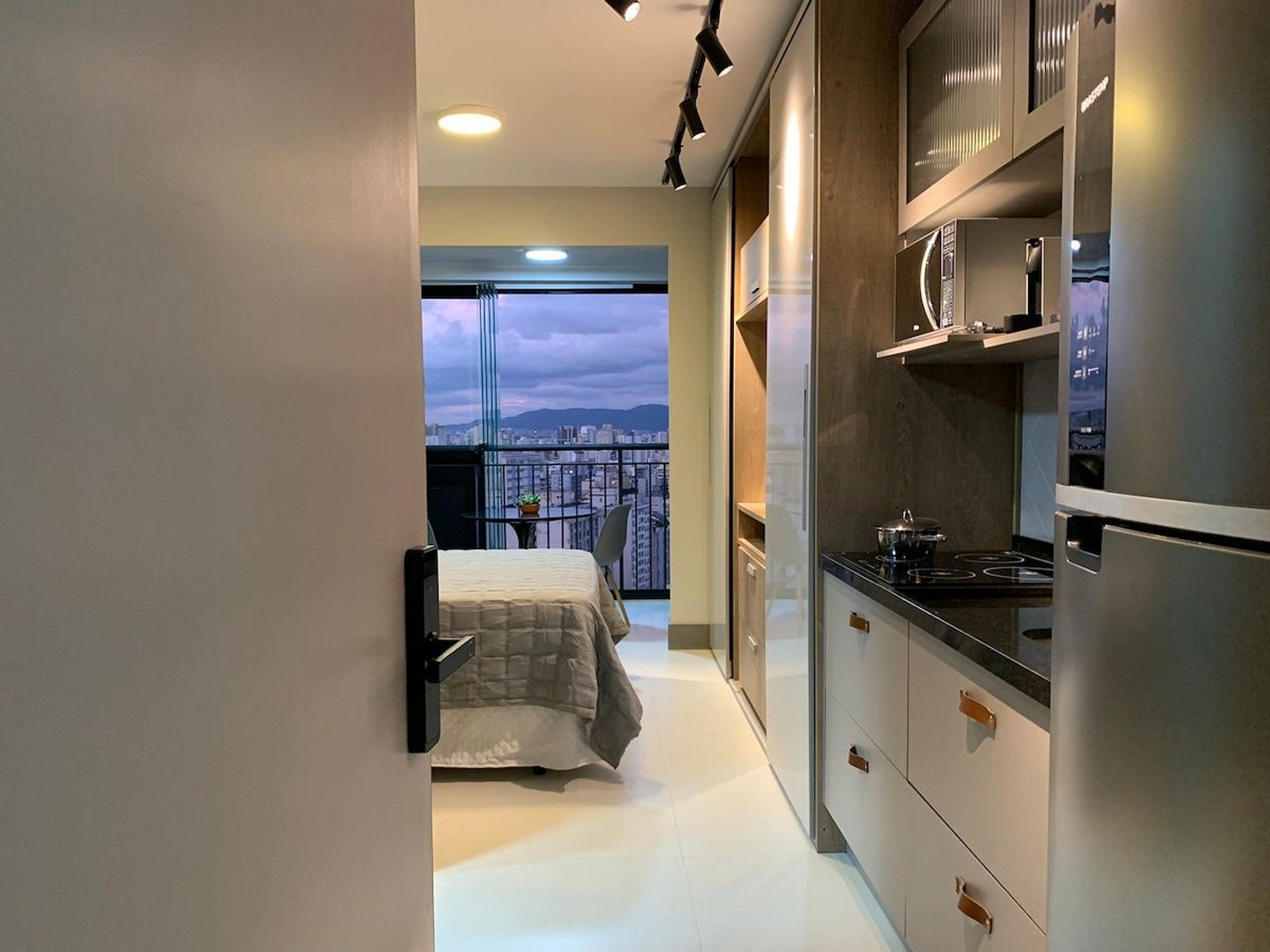 Studio novíssimo de 24m2 com design moderno e funcional, projetado para oferecer total conforto e comodidade ao hóspede, pensado desde o enxoval no padrão de hotel, até recursos de inteligência artificial disponibilizando a Alexa Echot Dot como concierge pessoal da sua hospedagem. A localização é mais um diferencial, vista de tirar o fôlego, a 500m do metrô Mackenzie (Linha Amarela), sendo seu cantinho ideal em Sampa para negócios, compras ou lazer.
