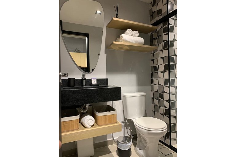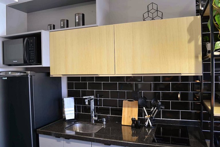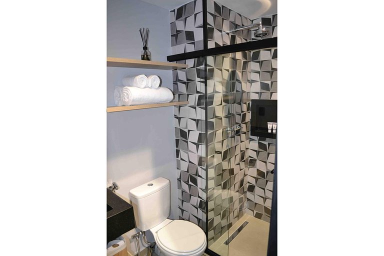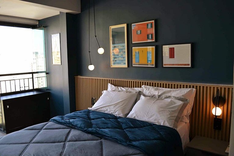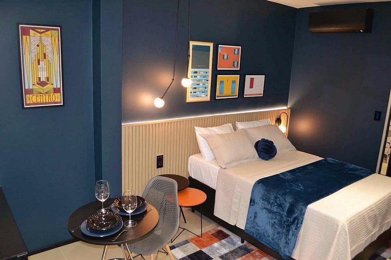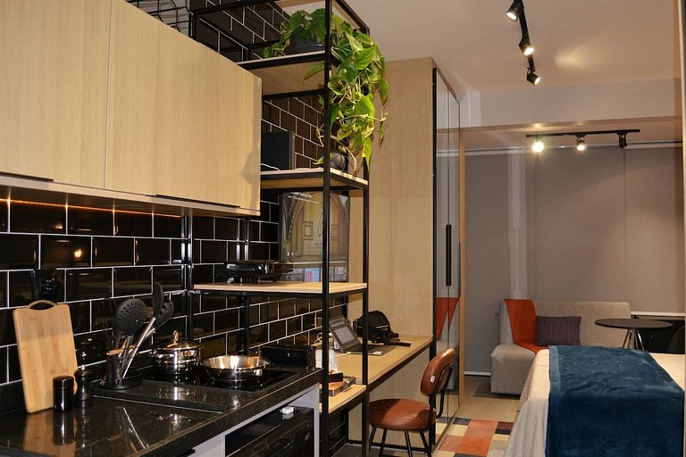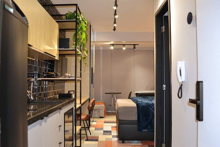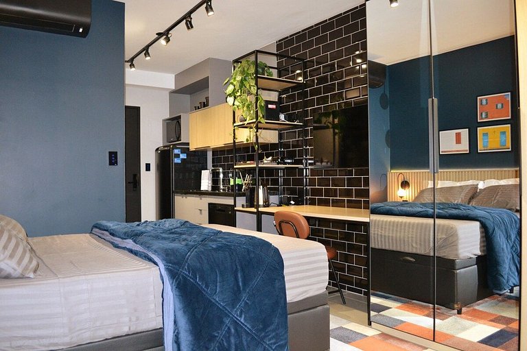 Studio novíssimo com design moderno urbano, projetado para oferecer total conforto e comodidade ao hóspede, pensado desde o enxoval de cama e banho no padrão de hotel, até recursos de inteligência artificial disponibilizando a Alexa Echot Dot como concierge pessoal da sua hospedagem.