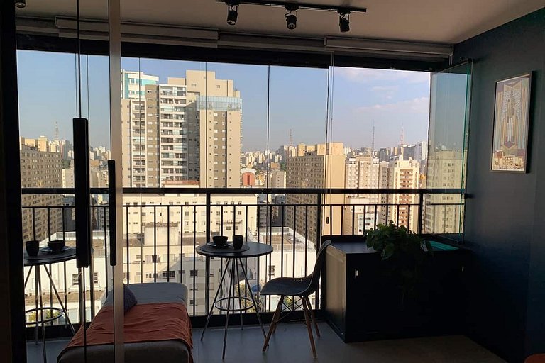 Localizado em um condomínio com portaria 24h e infraestrutura completa da lazer, tem como vizinhos o Parque Augusta, Praça Roosevelt, Rua Augusta e a estação de metrô Higienopolis-Mackenzie, quem escolhe essa localização está a poucos minutos de distância das principais atrações turísticas da cidade.