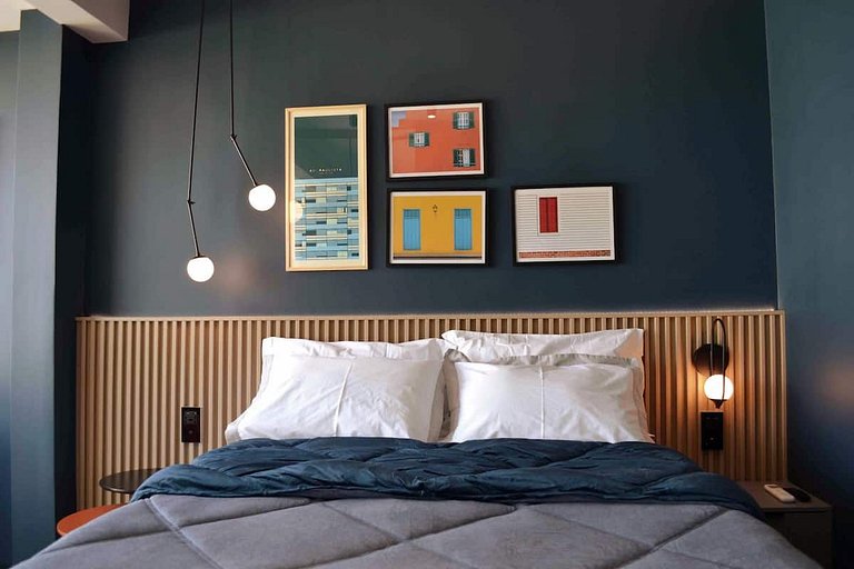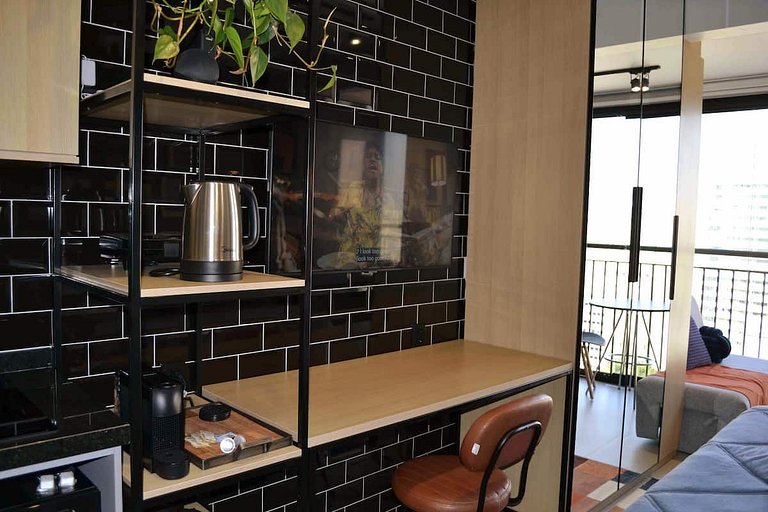 Nosso studio de 24m2 possui uma atmosfera urbana repleta de comodidades smarts para proporcionar uma estadia inesquecível.