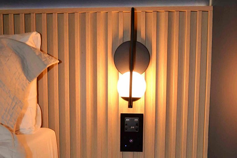 - Tomadas Usb e universais na cabeceira da cama