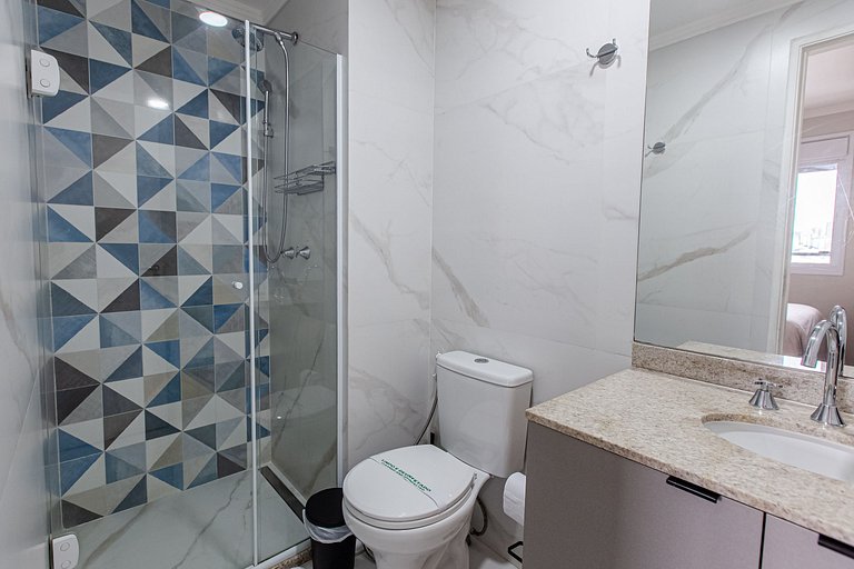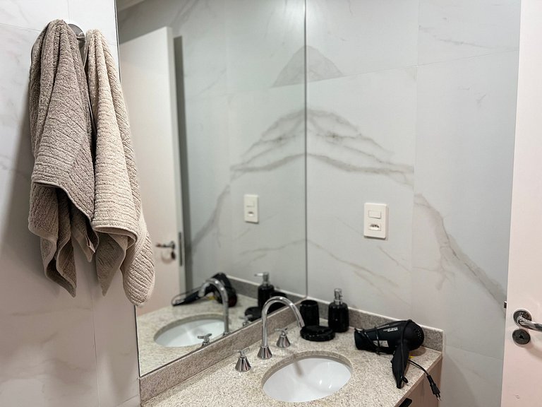 - Não é permitida a entrada de não hóspede (Visitantes) no apartamento. Caso a reserva seja para 2 pessoas, mas só há 1 hóspede registrado, autorizamos 1 visitante por dia, mediante a envio prévio dos dados (Das 08h as 22h) para cadastro na portaria.