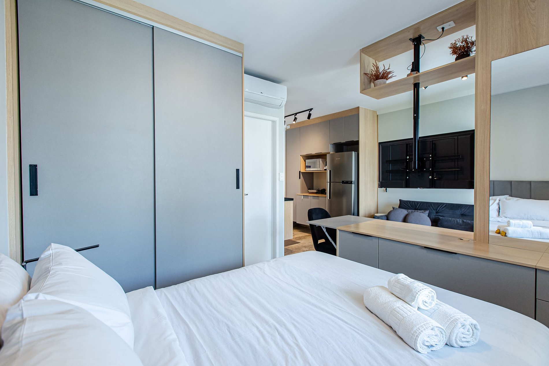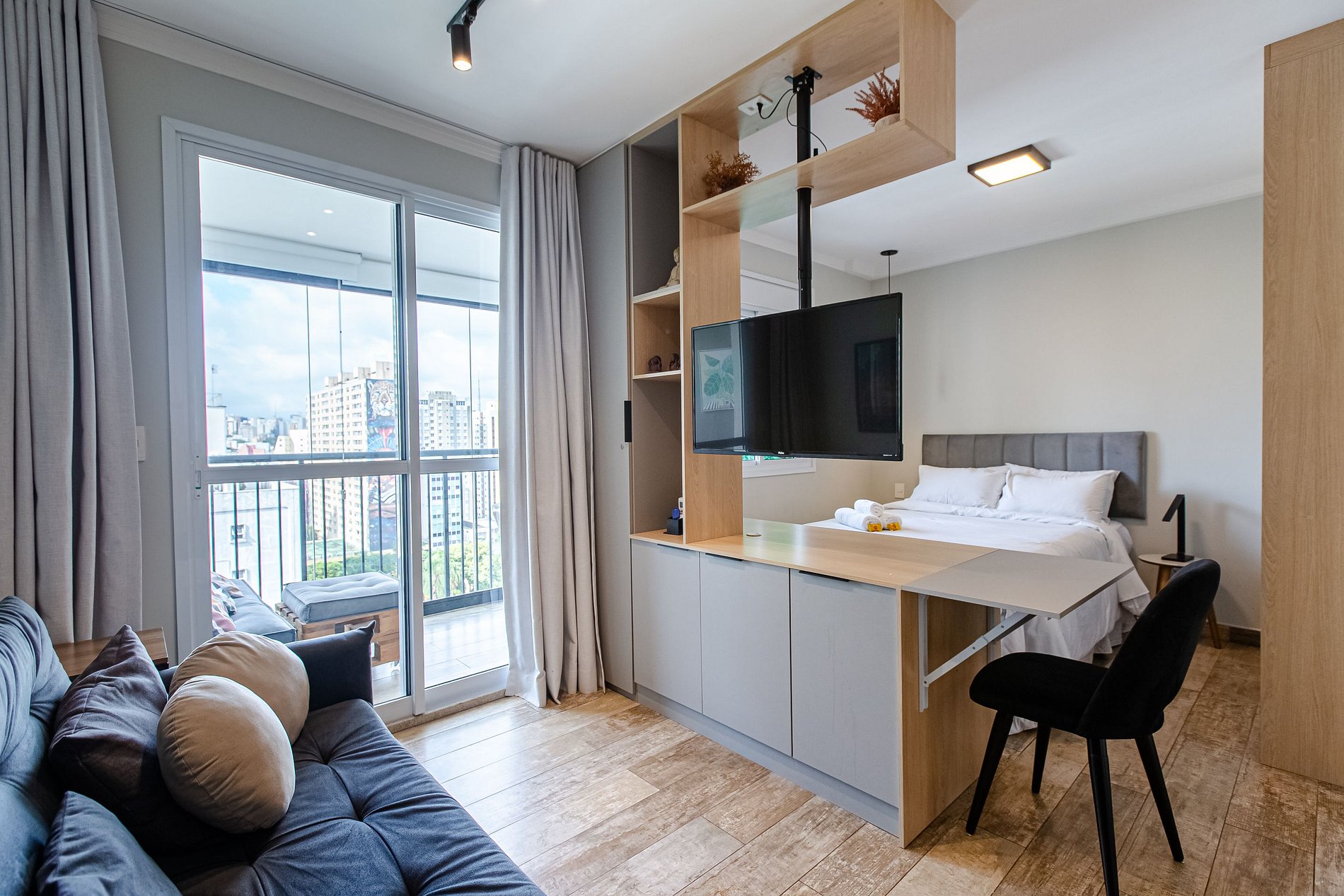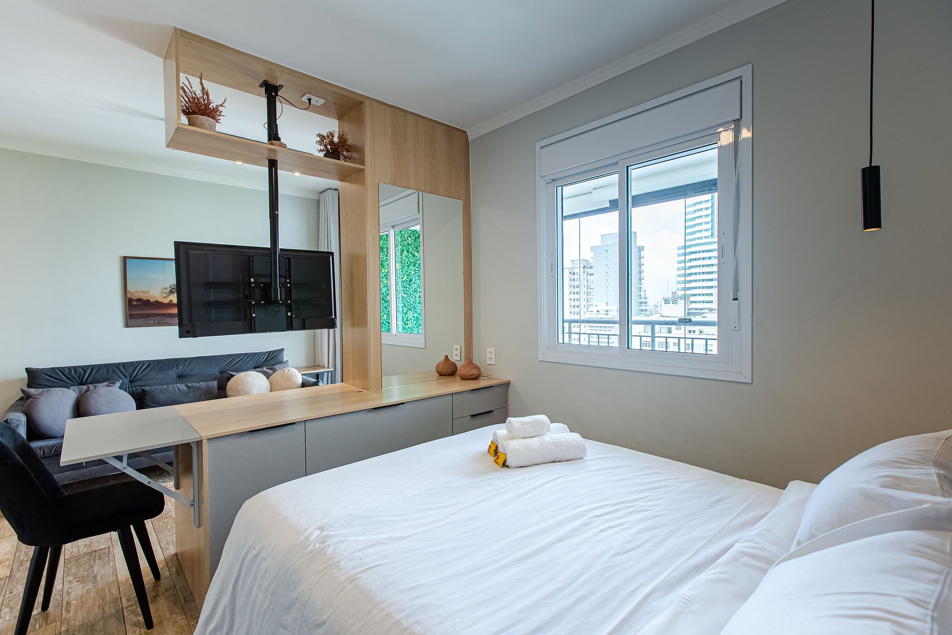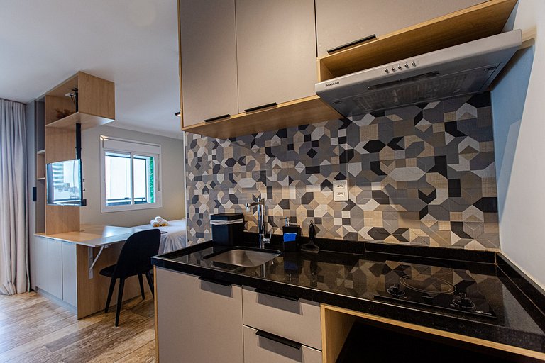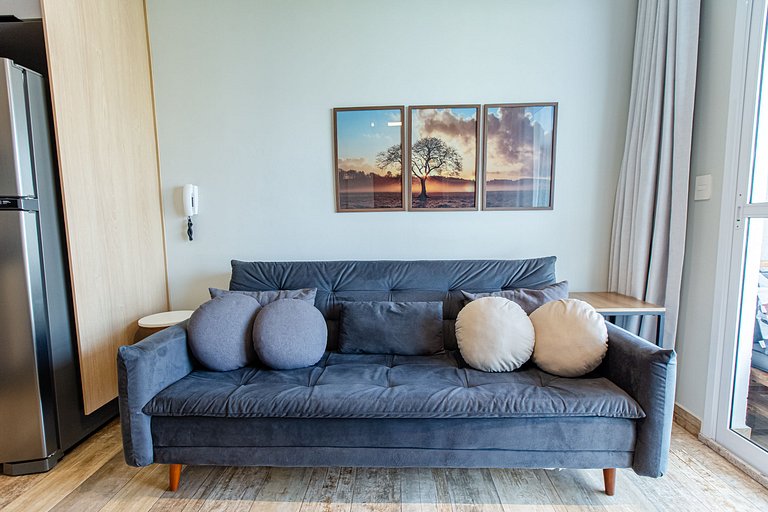 A @studiossampa disponibiliza a seus hóspedes mais uma opção de tamanho de studio, para quem busca mais espaço e conforto na sua hospedagem e uma decoração aconchegante para proporcionar a você a sensação de estar em casa.