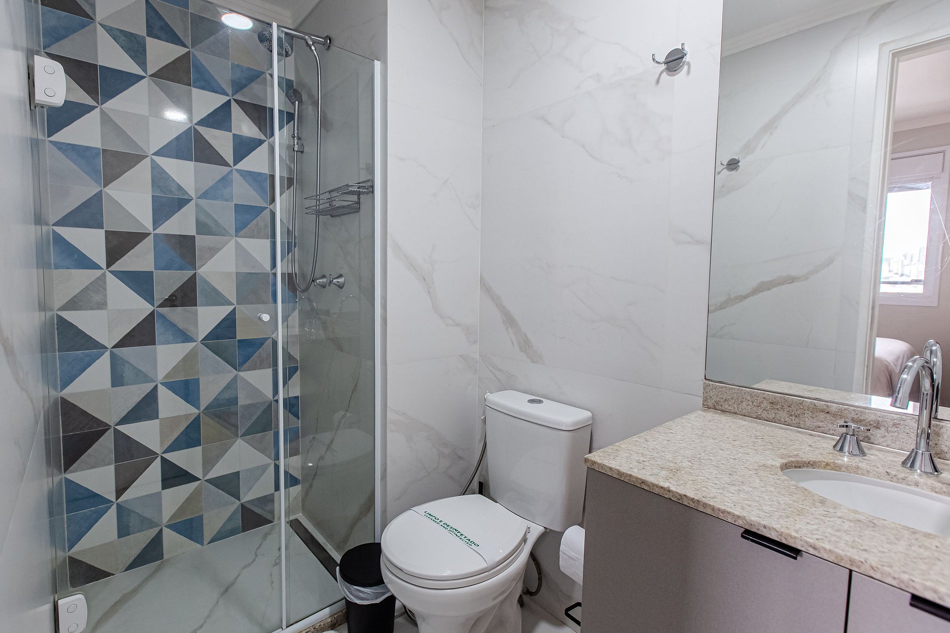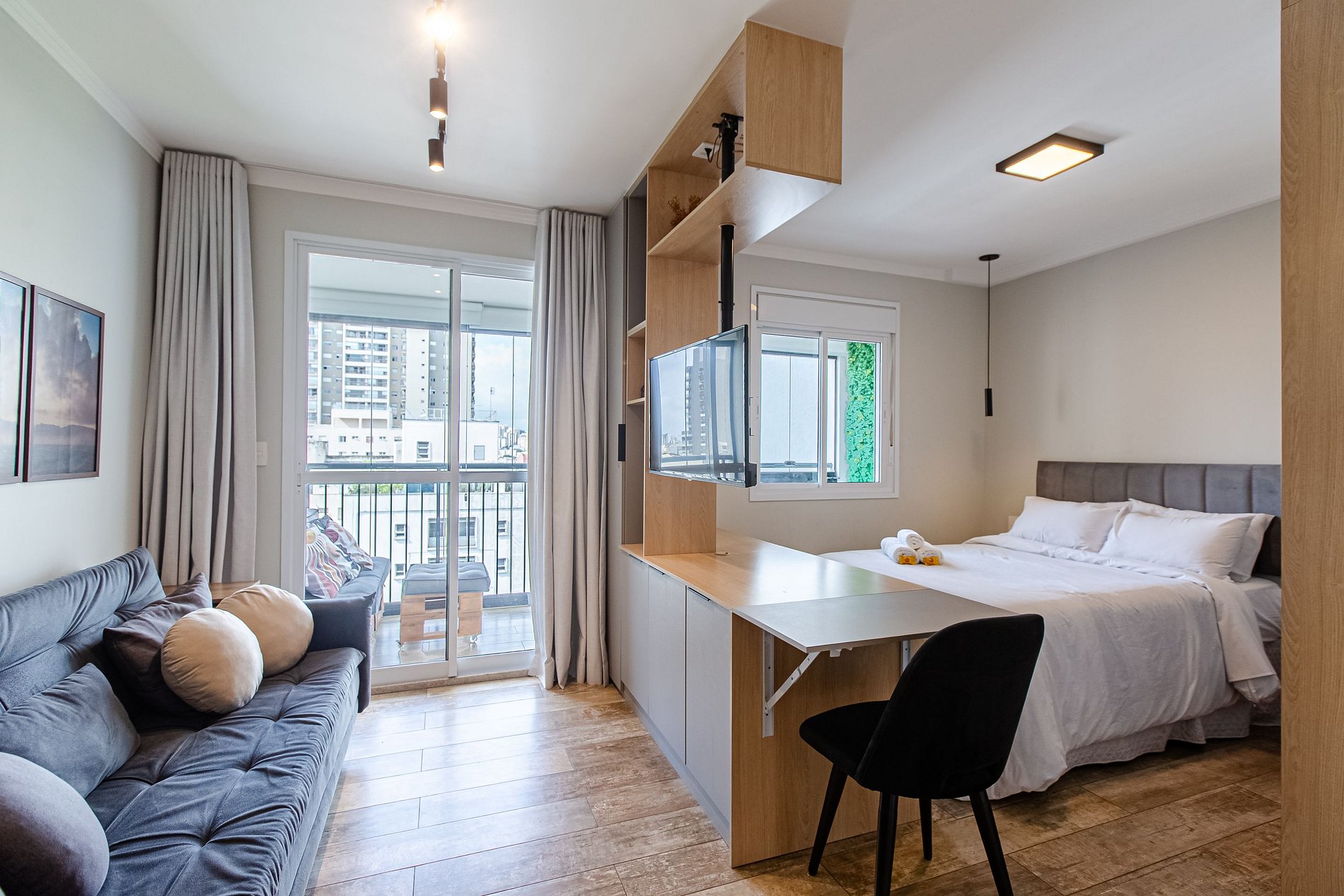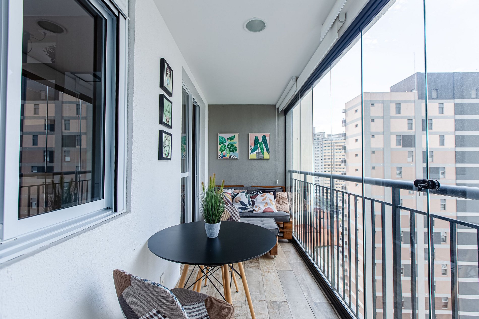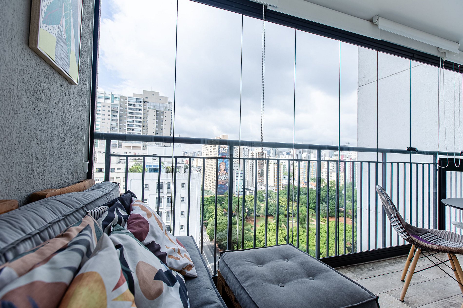 - Sacada envidraçada e cortinas blackout