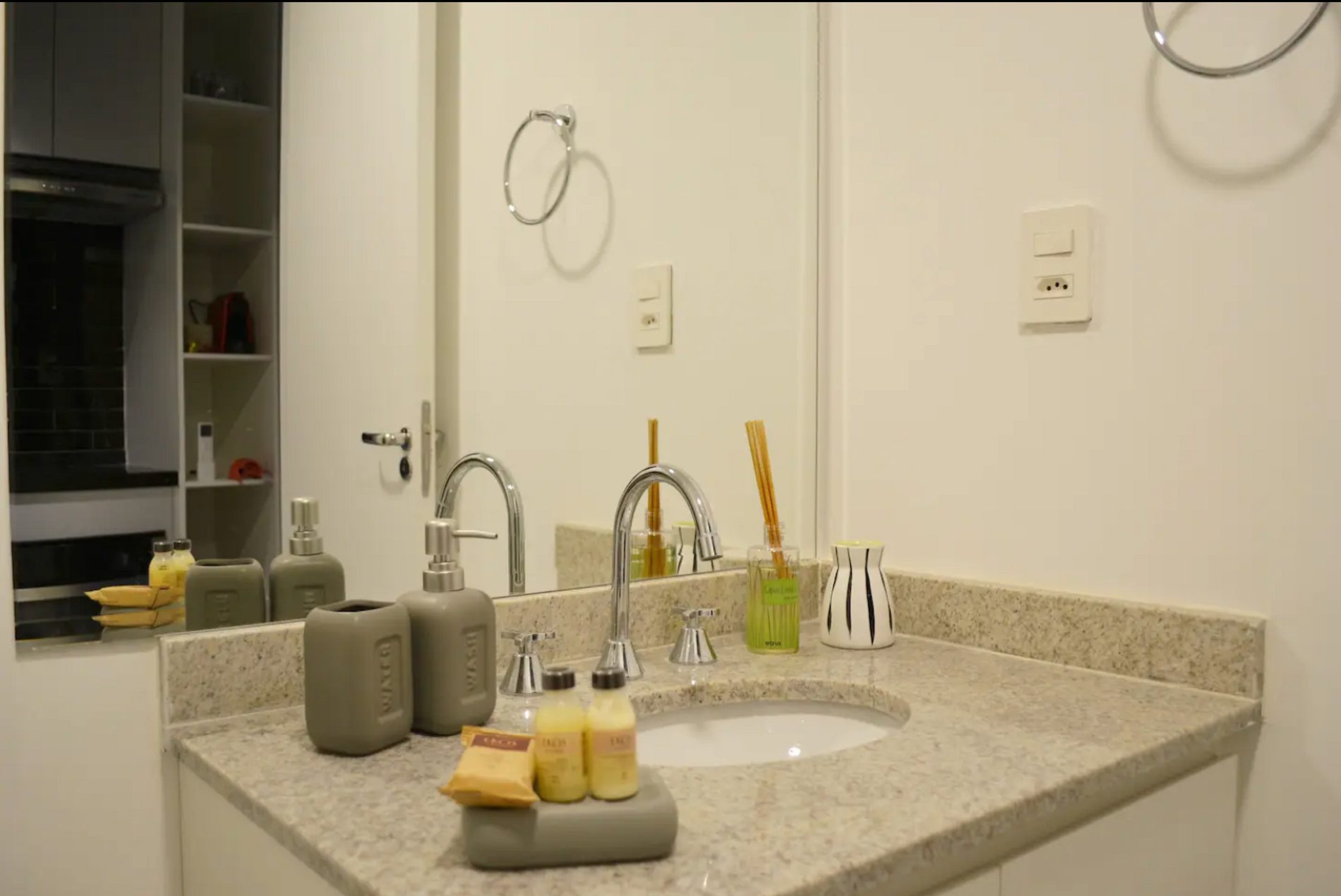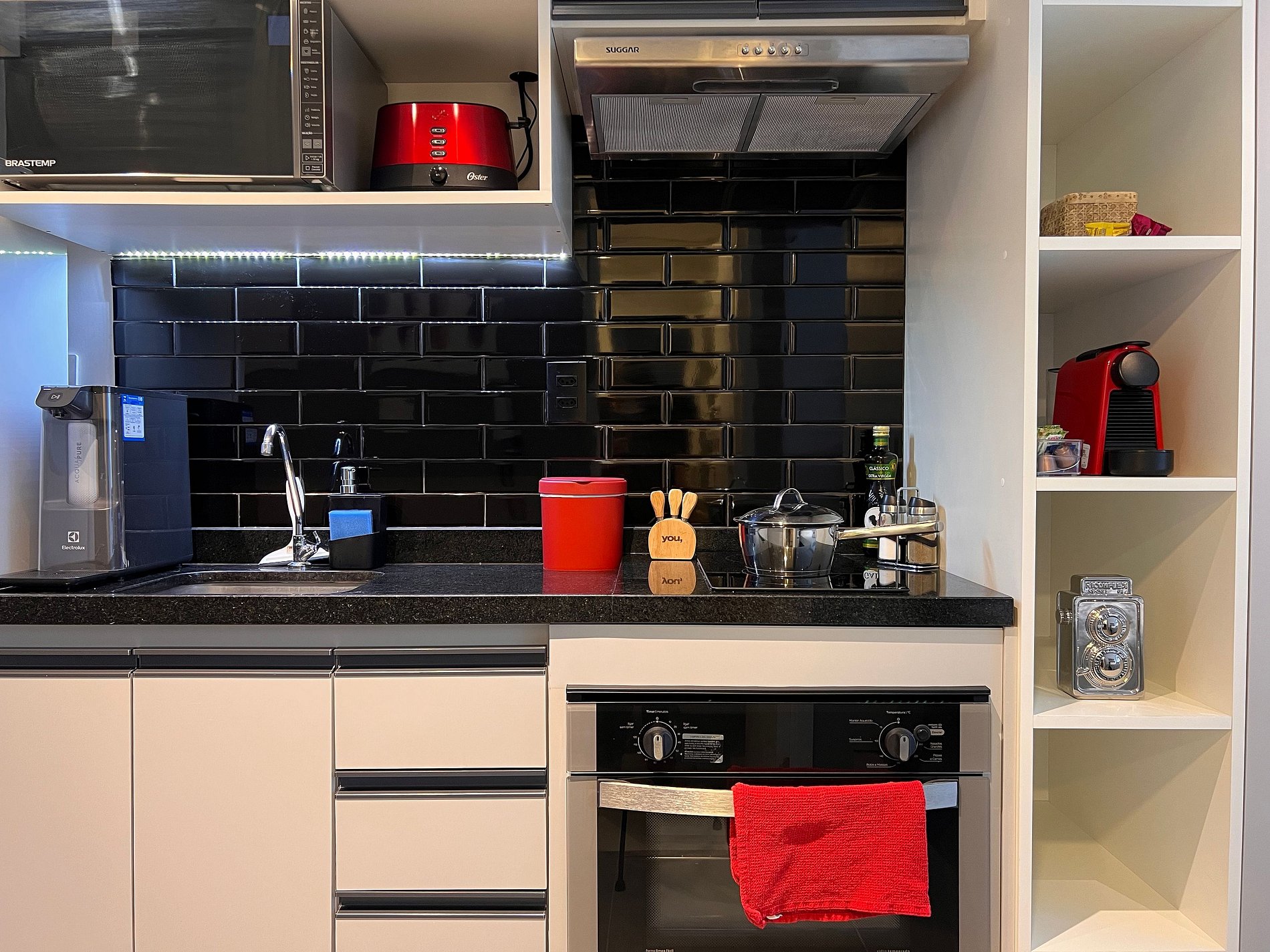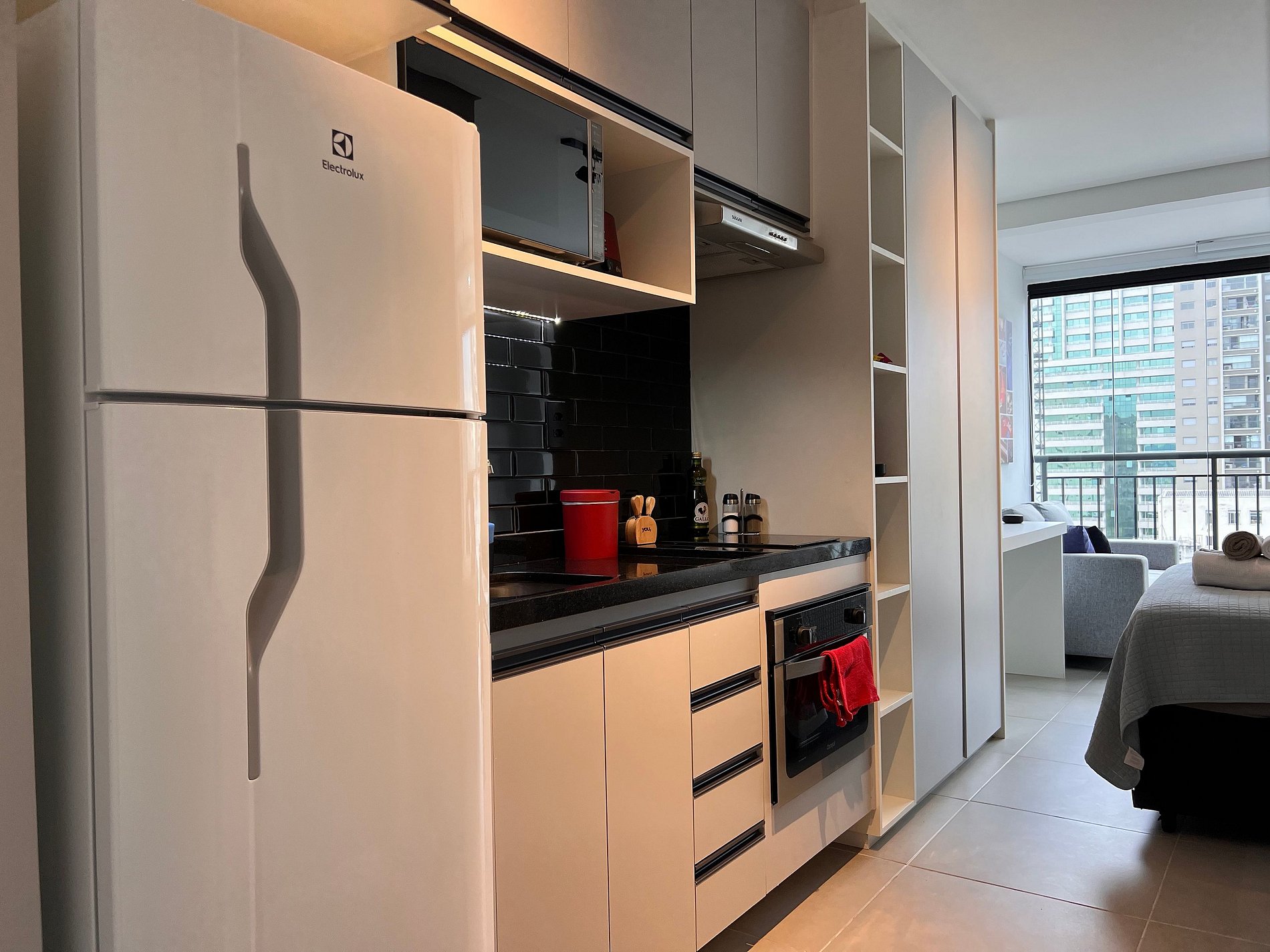Nosso studio compacto de 24m2 é super funcional, aproveitando cada espaço para oferecer uma experiência completa na sua estadia, seja para hospedagens de curta ou longa temporada.