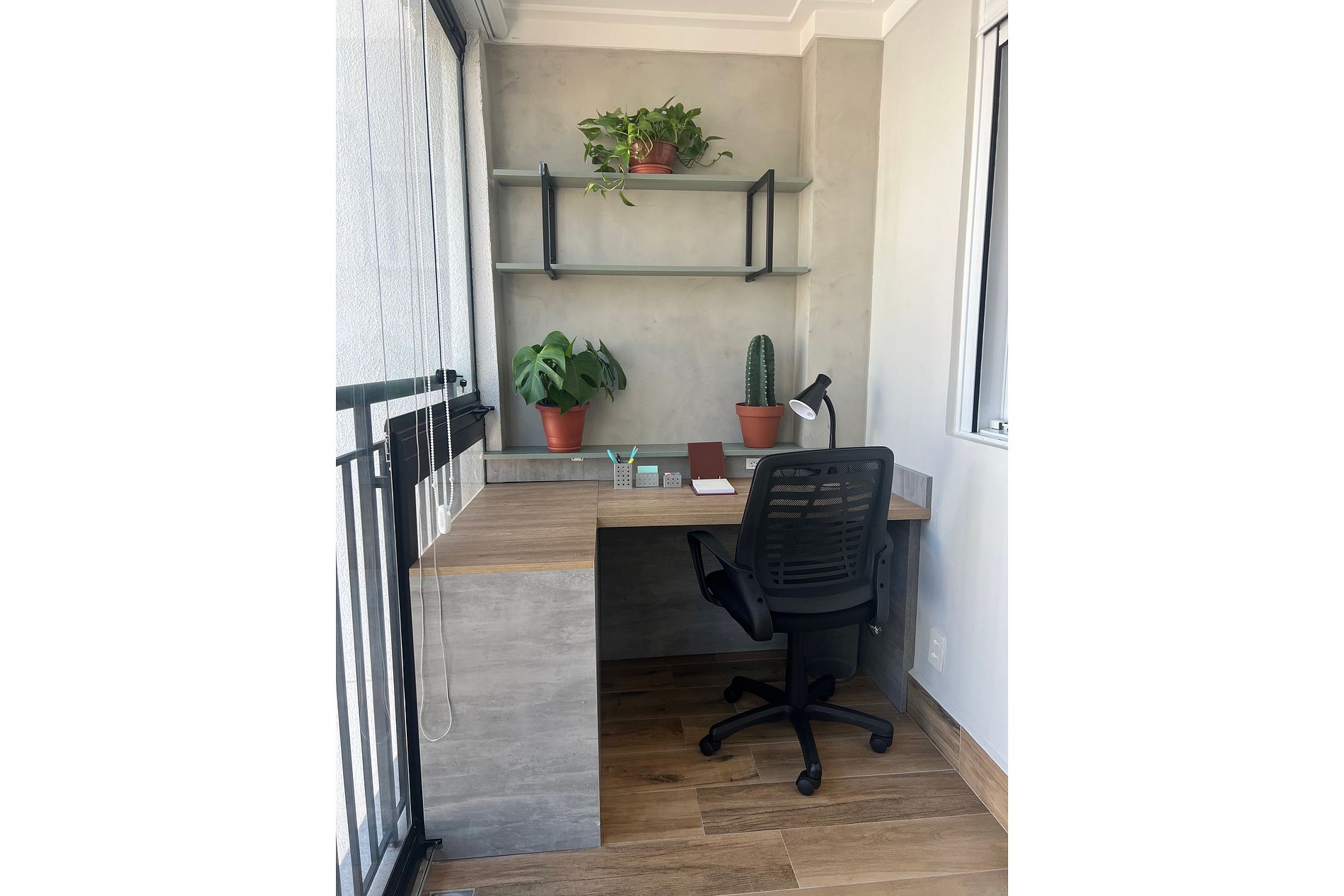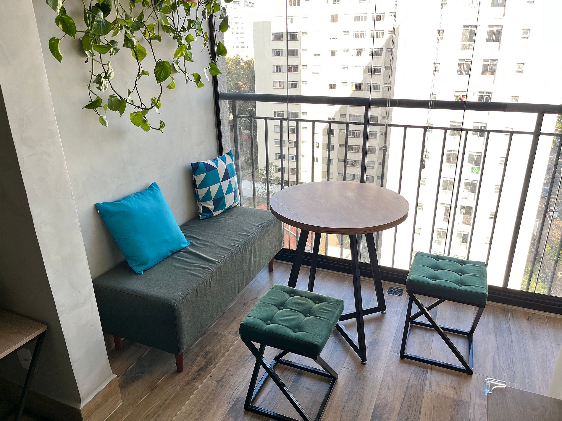 - Sacada envidraçada e cortinas blackout