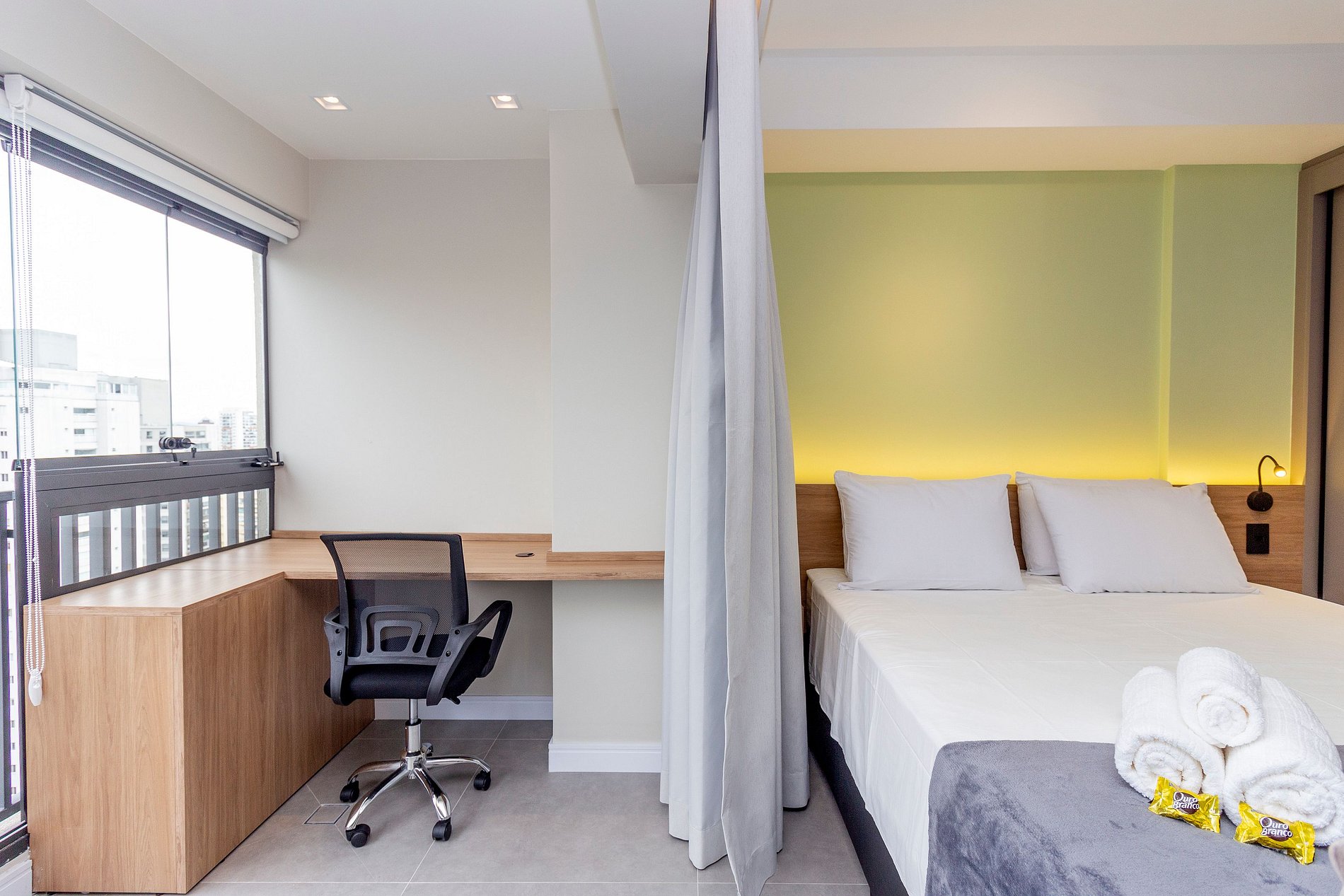 Apartamentos studio modernos, do tamanho das suas prioridades e com o lazer de que necessita. O condomínio Facto Paulista, além ser completo, com segurança 24h, tecnologia, áreas de lazer como piscina, espaço fitness e coworking, está num dos endereços mais queridos de São Paulo. O lugar perfeito para se hospedar a negócios, lazer, compras ou mesmo morar pelo tempo que você quiser.