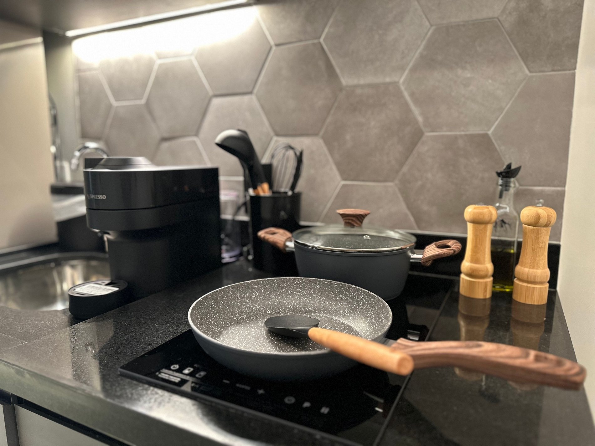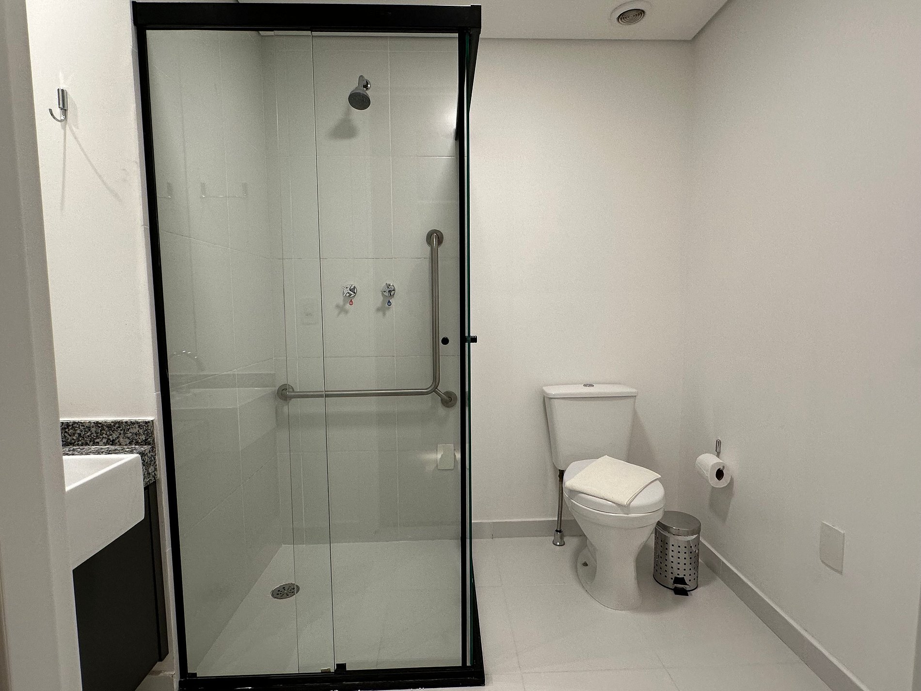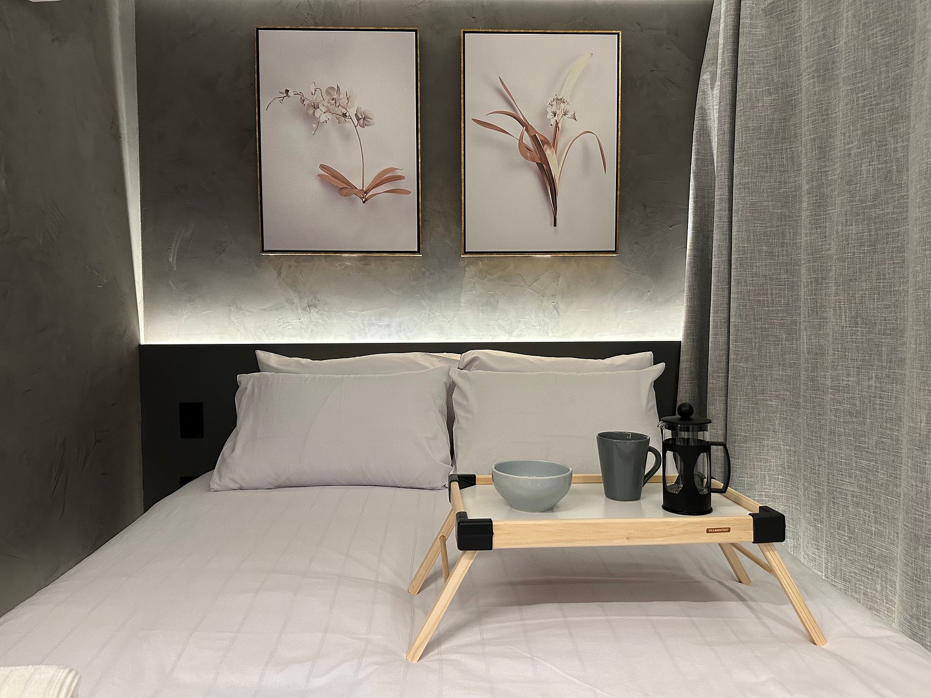 Este studio está repleto de comodidades atendendo hospedagens de curta ou longa temporada.