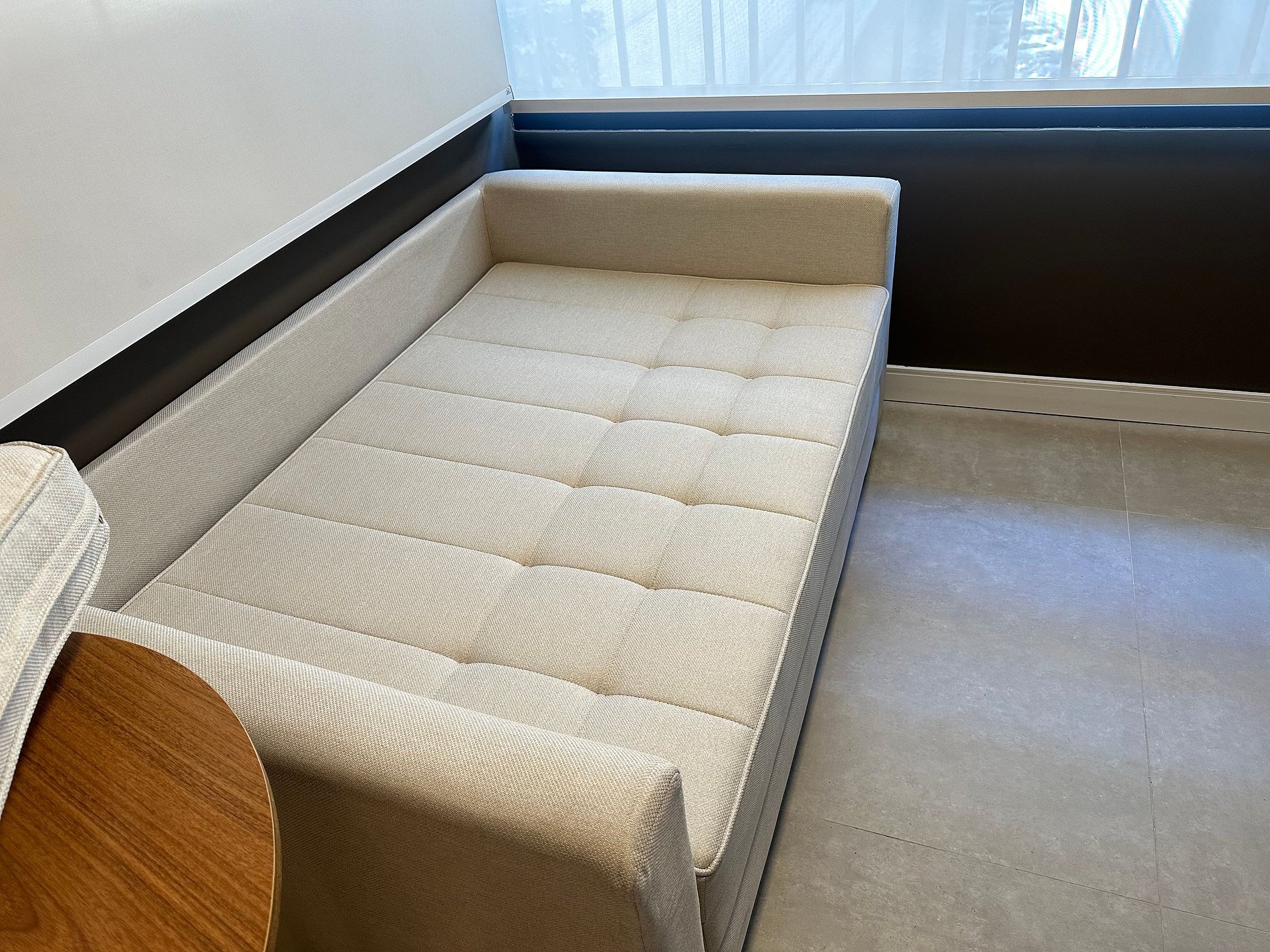 ** O enxoval para uso do sofá-cama é disponibilizado em reservas para 3 pessoas. Em caso de reservas para 2 hóspedes com a intenção de uso das duas camas é cobrado taxa adicional de enxoval.