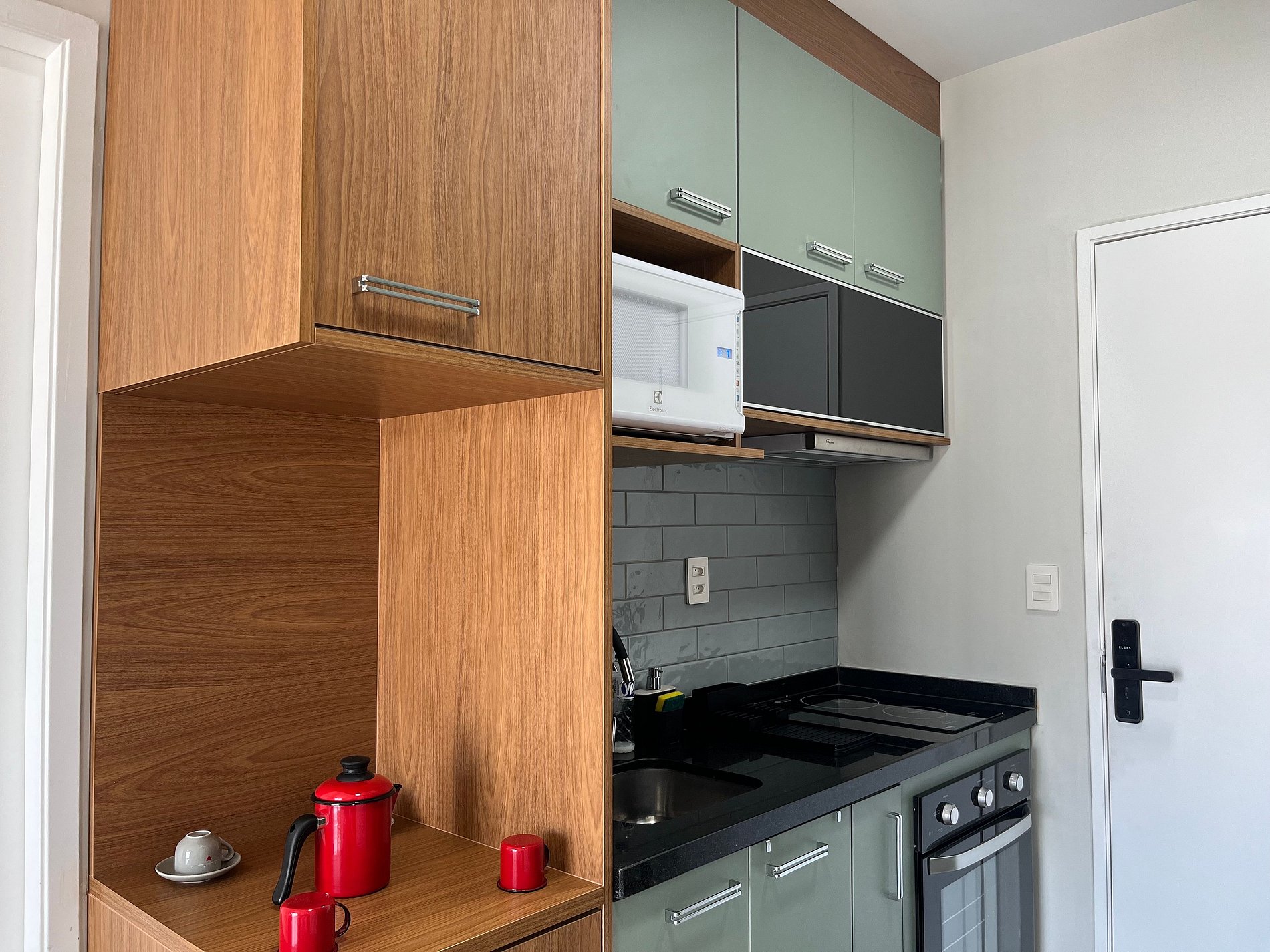 No 22º andar com uma vista incrível para o Parque Augusta, este studio além de ser completo possui segurança 24h e infra-estrutura completa, sendo imperdível dar uma conferida no rooftop (Skylounge 27º andar) com uma vista do centro de SP de tirar o fôlego, entre outros espaços de lazer como piscina, academia, lavanderia, espaço coworking.
