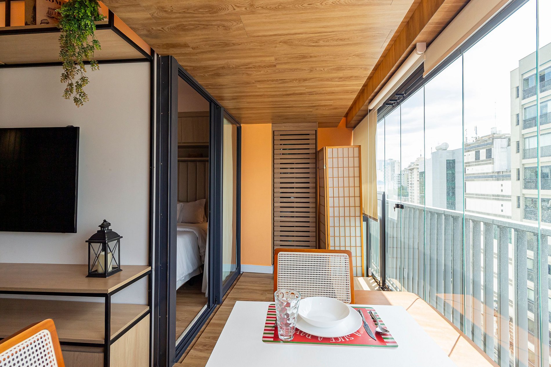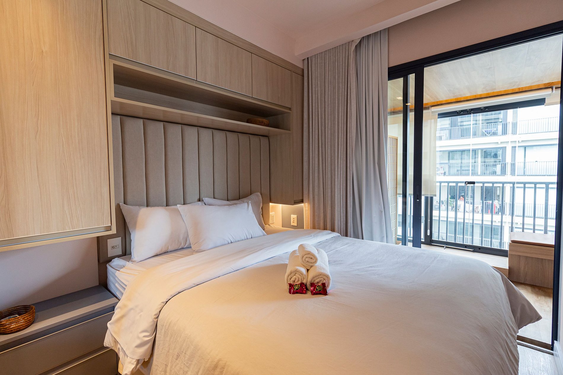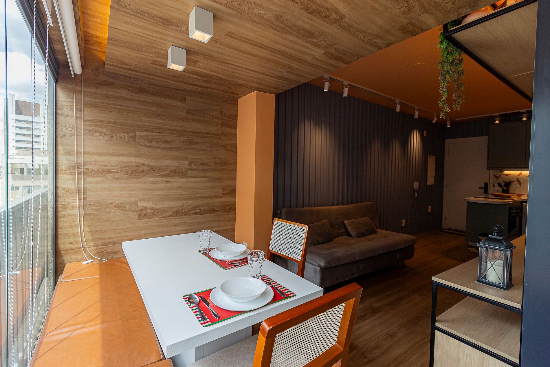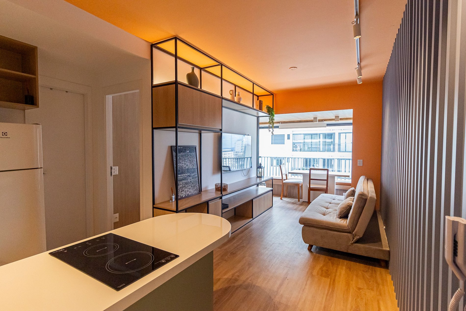 Nosso amplo studio de 40m² possui uma atmosfera moderna com decoração sofisticada, super equipado para atender nossos hóspedes que não abrem mão de conforto e sofisticação em suas estadias, estando pronto para acomodar até 3 pessoas confortavelmente em estadias de longa ou curta duração.