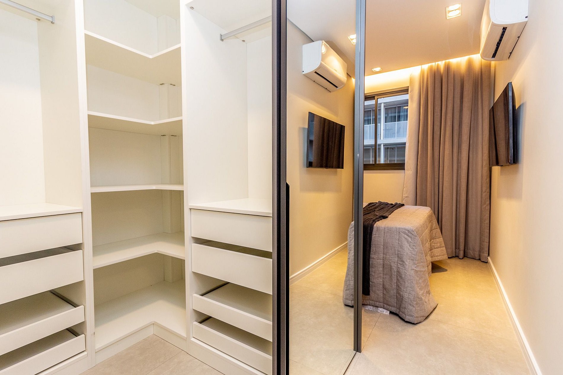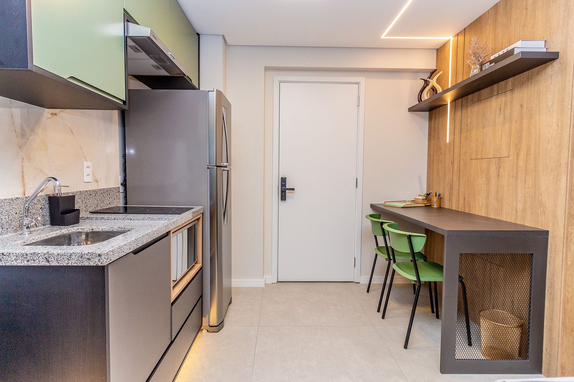 Novíssimo studio de 35m² com decoração moderna e sofisticada, foi preparado para hospedar confortavelmente até 4 pessoas. Super equipado para atender nossos hóspedes que não abrem mão de conforto e sofisticação em suas estadias, repleto de comodidades atendendo hospedagens de curta ou longa temporada.