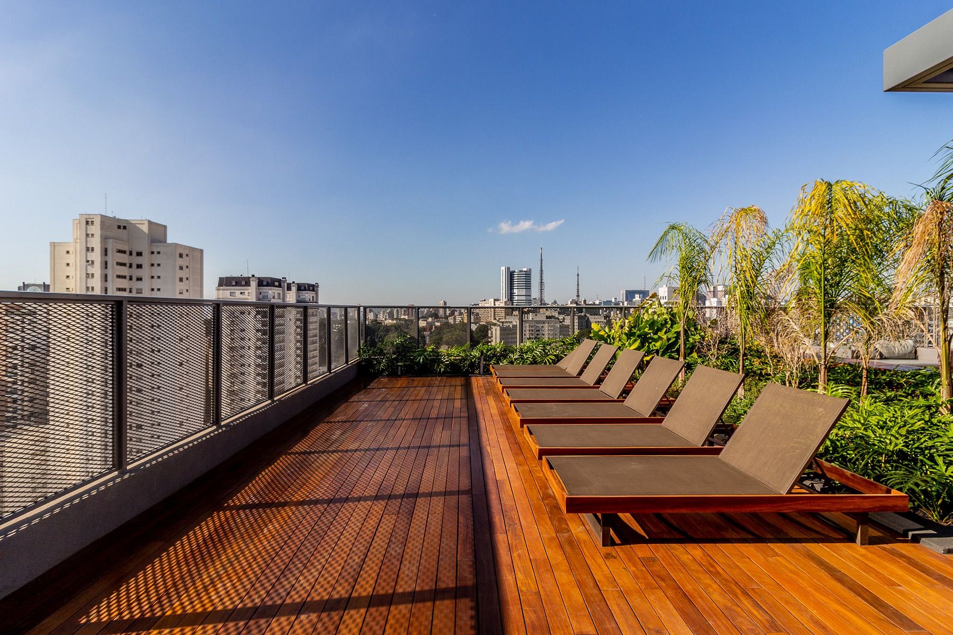 O condomínio tem como diferencial um rooftop com uma vista maravilhosa para o Skyline da região de Pinheiros e Jardins contando ainda com uma Piscina e um Solarium para apreciar a vista.