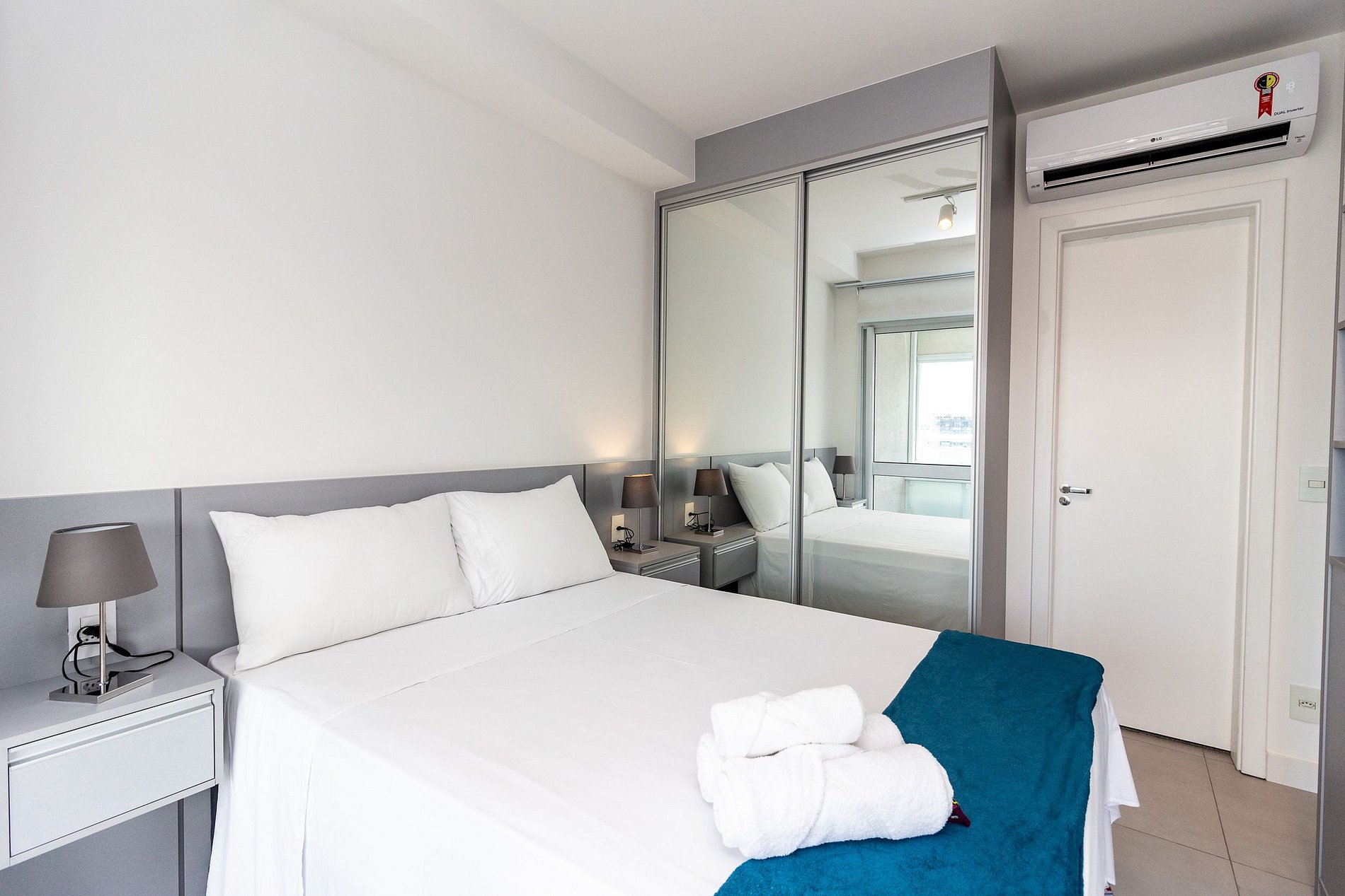 Novíssimo apartamento de 40m² com decoração moderna e funcional, super equipado para atender nossos hóspedes que não abrem mão de conforto em suas estadias, estando pronto para acomodar até 4 pessoas** confortavelmente.