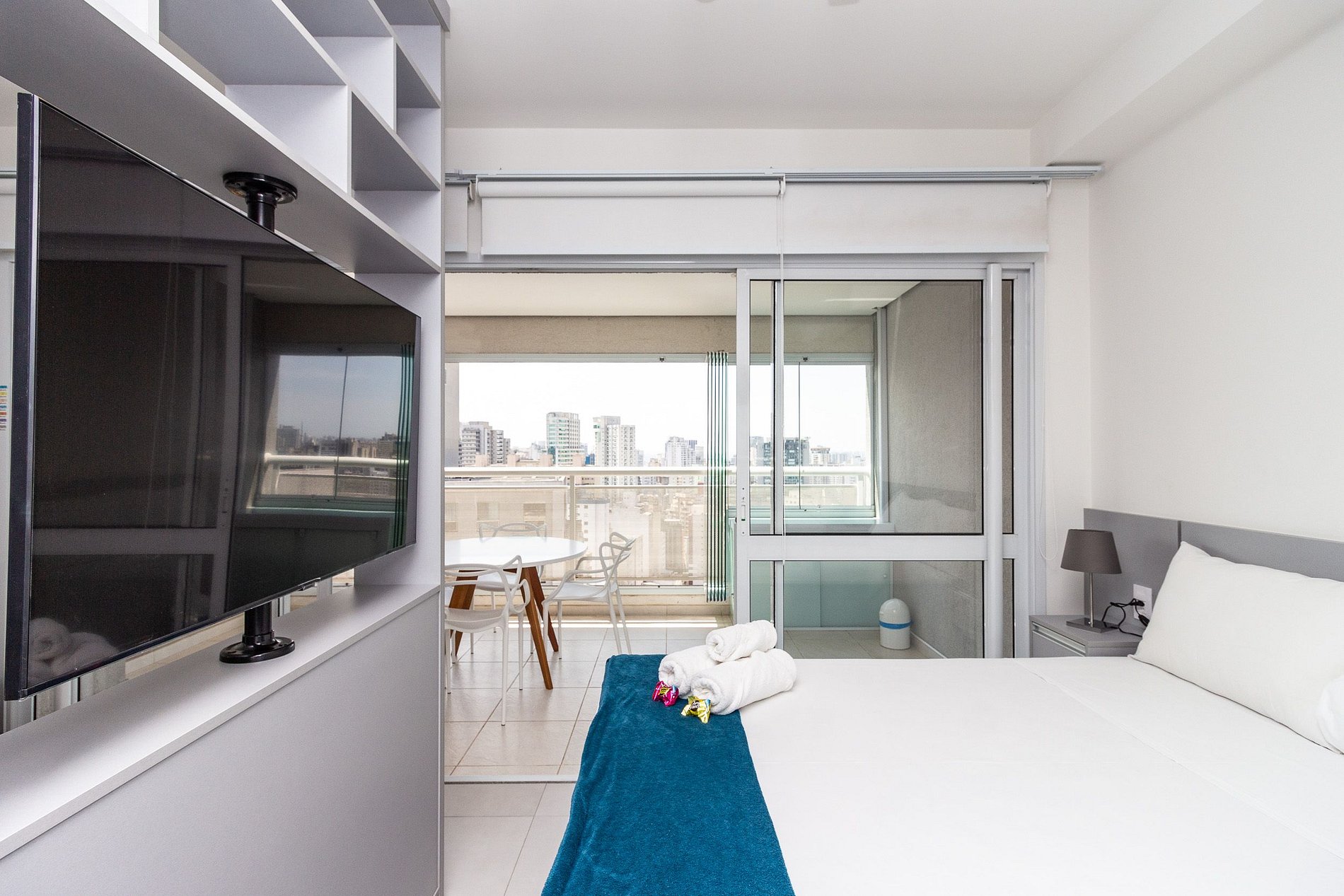 Apartamento de 1 dormitório com 40m² no 19º andar, localizado no eixo Centro-Paulista, a poucos passos do Shopping Frei Caneca e de hospitais de referência como Sírio Libanês e Nove de Julho, 15min a pé da Av. Paulista e 10min do metrô Higienopólis-Mackenzie, se hospedar por aqui significa ter tudo a sua volta.