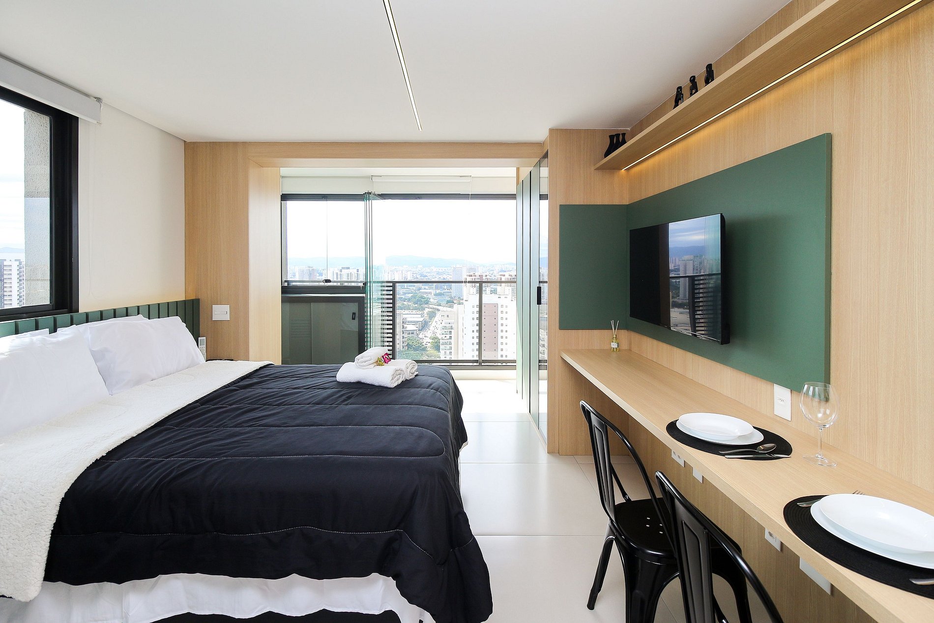 Studio moderno no 24º andar do condomínio Go Platô em Perdizes, a poucos passos do Allianz Parque. Vista livre, decoração sofisticada e excelente localização. Condomínio com segurança 24h, piscina no rooftop com vista panorâmica, academia completa, coworking e lavanderia. Ideal para quem busca conforto, lazer e praticidade para quem visita São Paulo para um show, eventos ou apenas uma estadia relaxante.