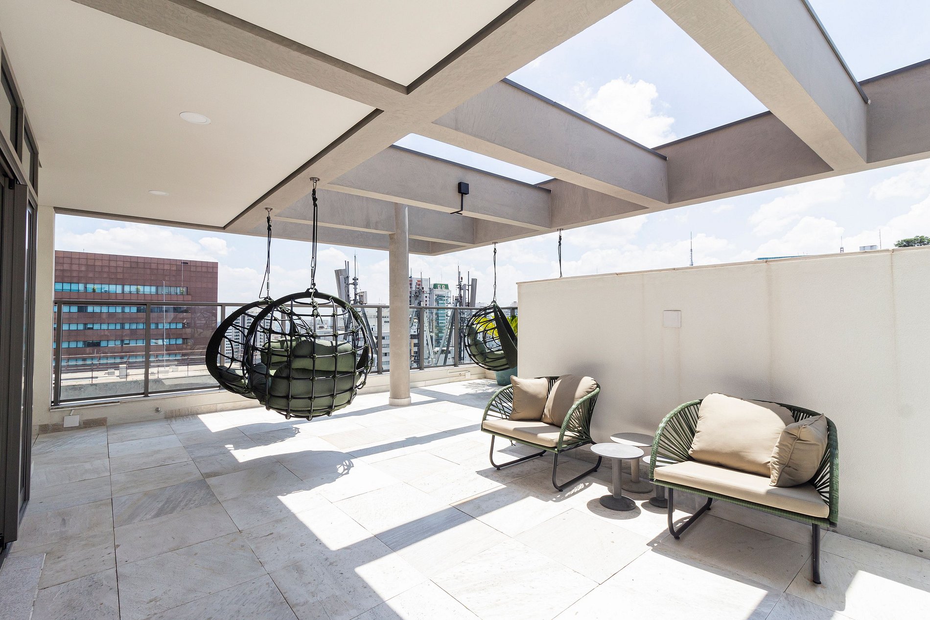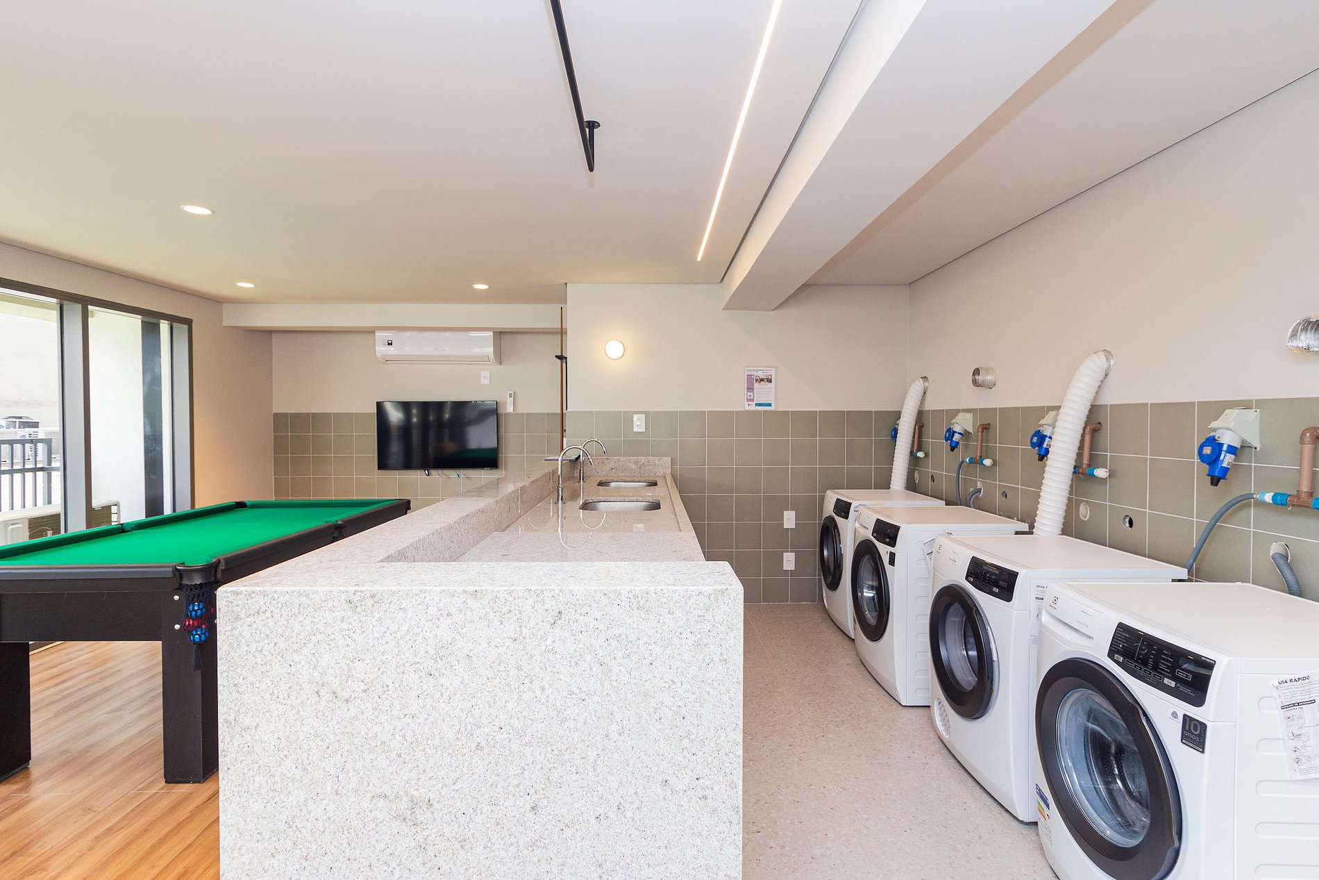 O condomínio ainda conta como diferencial as areas de comuns com móveis e decoração de alto padrão, além de uma piscina no rooftop com vista espetacular.